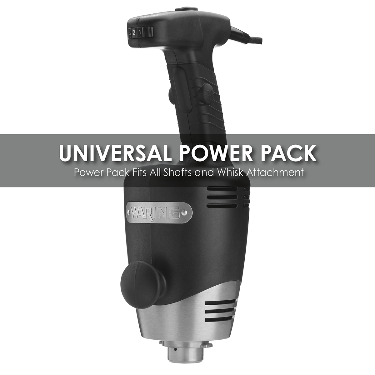 - Universal power pack fits all shafts and whisk attachment